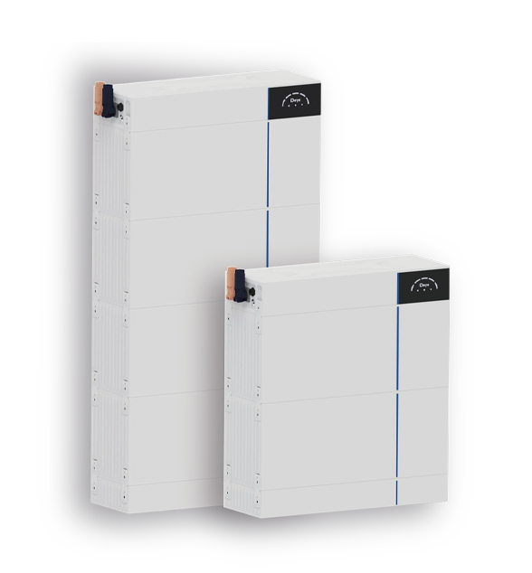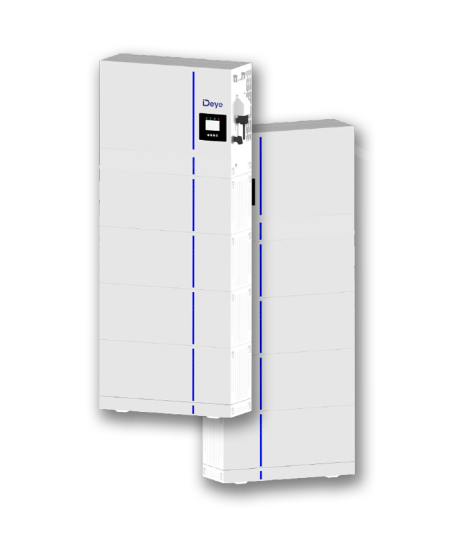 Článkové baterie značky DEYE, které jsou složeny/vloženy do systému ALL IN ONE, každý článek o kapacitě 5,12 kWh.